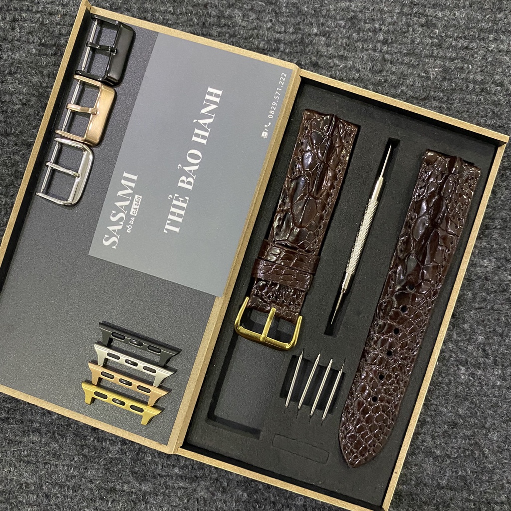 W5. Dây đồng hồ Apple Watch DA CÁ SẤU Gai Vân Nổi,SP GỒM: 1 DÂY+1 KHÓA+2 CHỐT APPLEWATCH,TẶNG HỘP VÀ 1 CÂY THAY