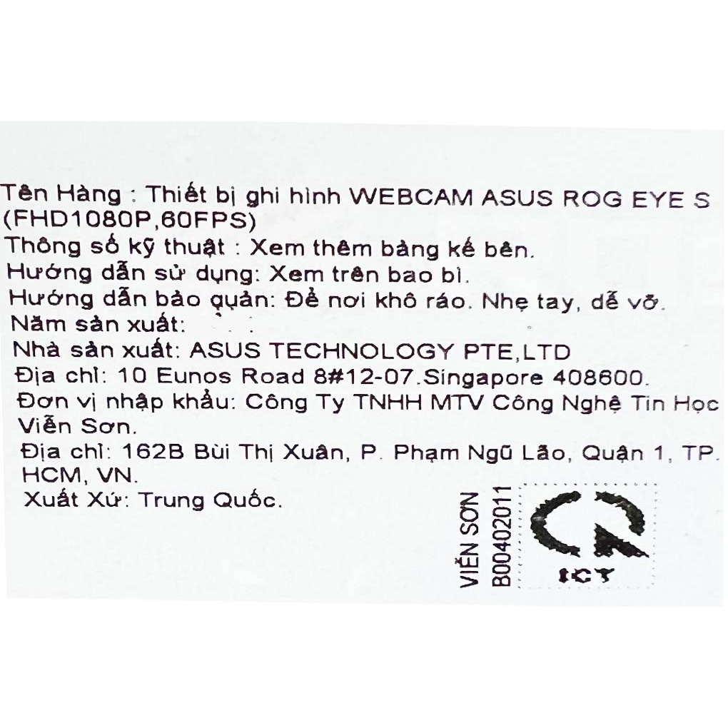 Máy tính & Laptop > Phụ Kiện Máy Tính > Webcam || [Mã ELMALL150 giảm 8% đơn 500K] Webcam 1080p Asus Rog Eye S ĐenCòn hàng
