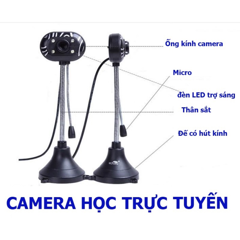 Giới thiệu Webcam Chân Cao Đen Sọc Trắng 4 Đèn, Có Mic
