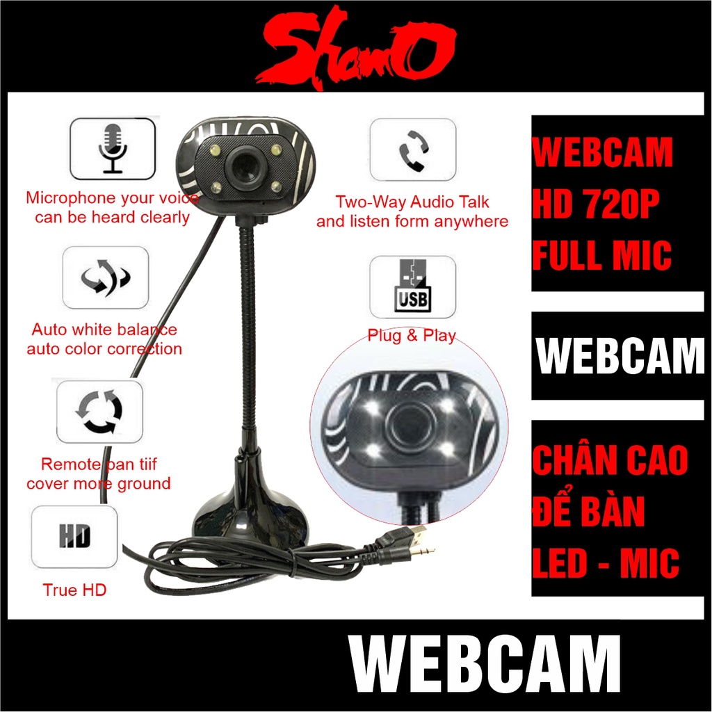 Webcam chân cao dùng cho máy tính – Có Míc và đèn Led trợ sáng – Bảo hành 12 tháng – Hình ảnh siêu nét – Âm thanh chuẩn