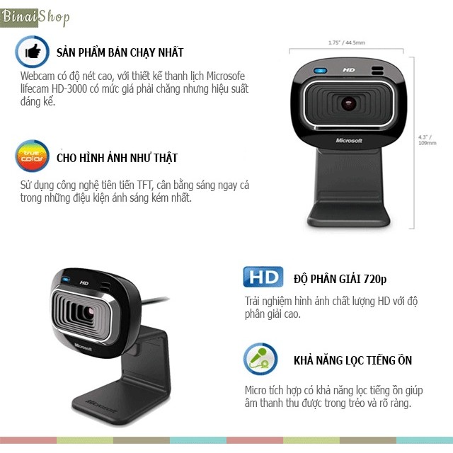 Giới thiệu sản phẩm Webcam cho laptop Microsoft LifeCam HD-3000Hình ảnh rõ nét, chân thực Microsoft LifeCam HD-3000 cho phép bạn chia sẻ những video thật nhất với bạn bè, người thân và gia đình.