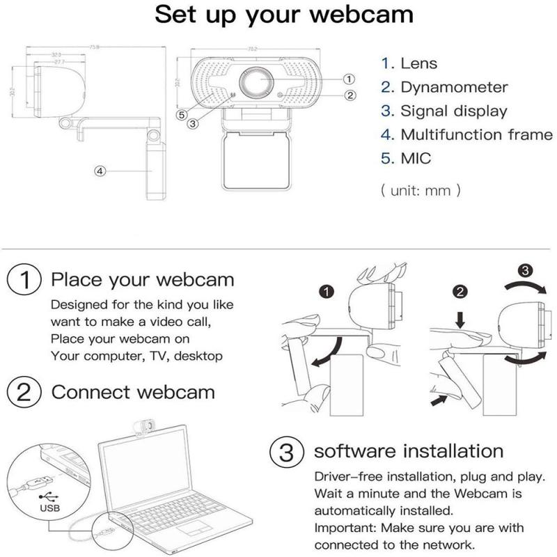 - Màn hình rộng 110 độ và micrô âm thanh nổi, máy ảnh máy tính có tiêu cự cố định quay video độ nét cao ở góc rộng lên đến 110 độ, dùng cho hội thảo trực tuyến, hội nghị truyền hình, phát trực tiếp,... âm thanh rõ hơn và hình ảnh sắc nét hơn, thu giọng nói của bạn ngay cả ở khoảng cách 10ft để đảm bảo mọi người thực sự nghe thấy bạn.