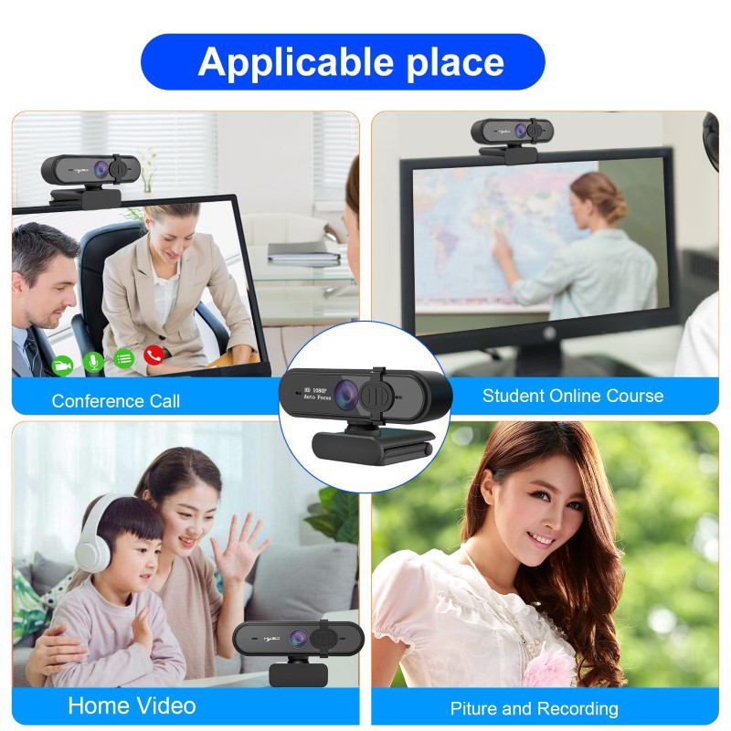- Webcam HXSJ S6 Auto Focus Góc Rộng 1080P- Tích Hợp 2 micro thu âm chống ồn