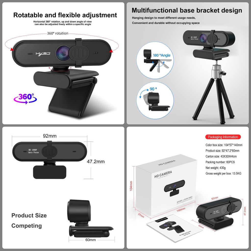 Máy tính & Laptop > Phụ Kiện Máy Tính > Webcam || [Mã 44ELSALE2 giảm 7% đơn 300K] Webcam HXSJ S6 Auto Focus Góc Rộng 1080PCòn hàng