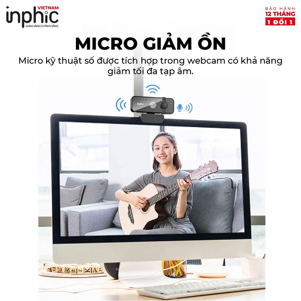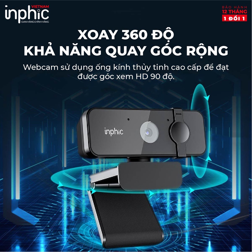 Webcam INPHIC UC10 Full HD 1080p Cực Nét Có Mic Dùng Cho Máy Tính Laptop Hỗ Trợ Học Tập và Làm Việc Online
