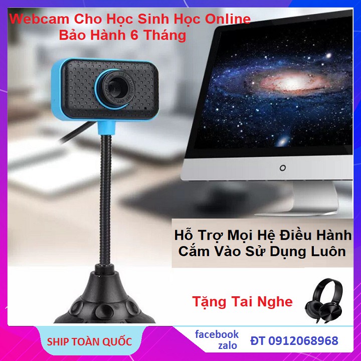 Bộ Webcam Kèm Mic Thân Cao Cho Học Sinh Học Online, Tặng Tai Nghe Chụp Tai ( Có Ảnh Thật )