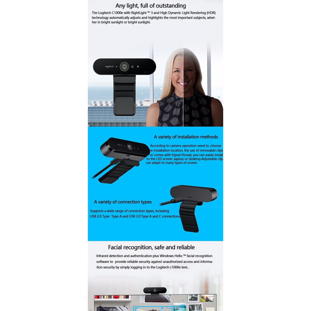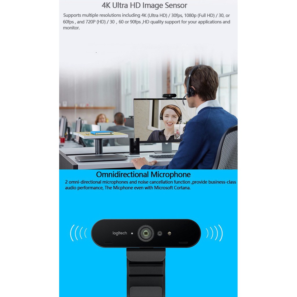 Giới thiệu Webcam Live Stream, Học Online, Truyền Hình Họp Hội Nghị Dùng Cho Máy Tính, Laptop Logitech C1000E Brio 4K Ultra Hd