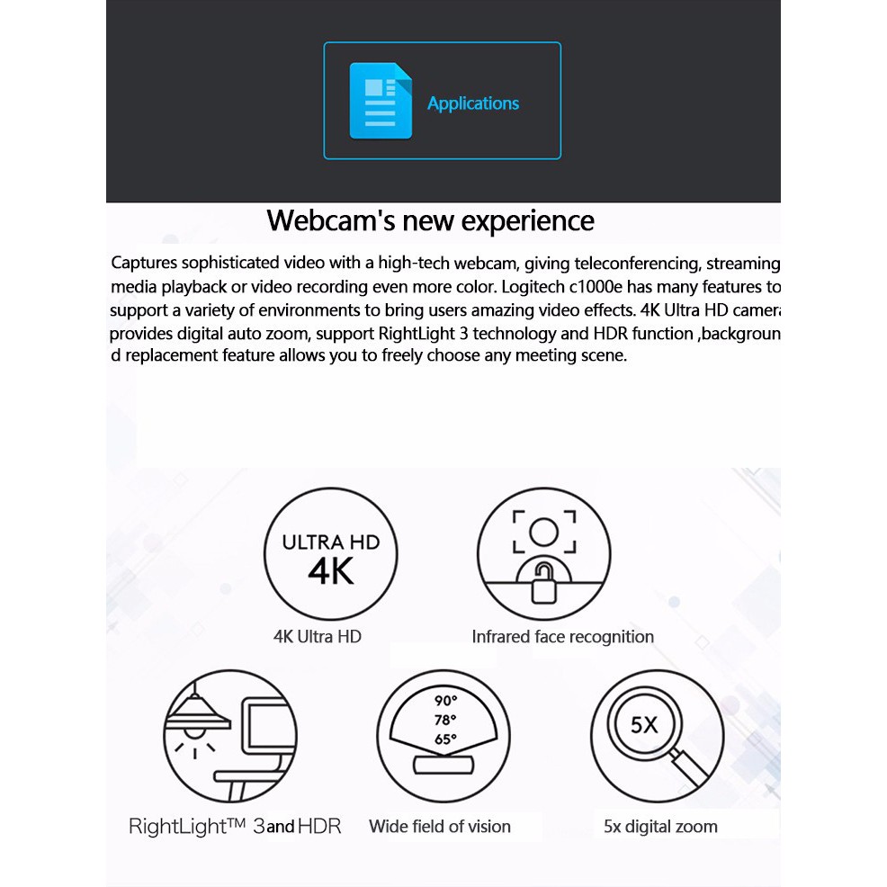 Máy tính & Laptop > Phụ Kiện Máy Tính > Webcam || Webcam Live Stream, Học Online, Truyền Hình Họp Hội Nghị Dùng Cho Máy Tính, Laptop Logitech C1000E Brio 4K Ultra HdCòn hàng
