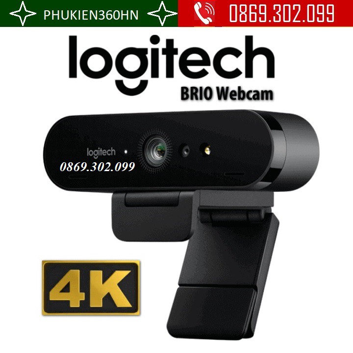 Webcam Logitech BRIO - 4K Ultra HD Phát video rõ ràng với độ phân giải, tốc độ khung hình, màu sắc và chi tiết siêu việt. Logitech BRIO mang đến chất lượng Ultra HD 4K ở tốc độ 30 khung hình/giây hoặc 1080p ở tốc độ 30 hoặc 60 khung hình/giây cho độ rõ ràng, mượt mà và chi tiết vượt trội. Nhìn cận cảnh hơn với tính năng thu phóng 5 lần.