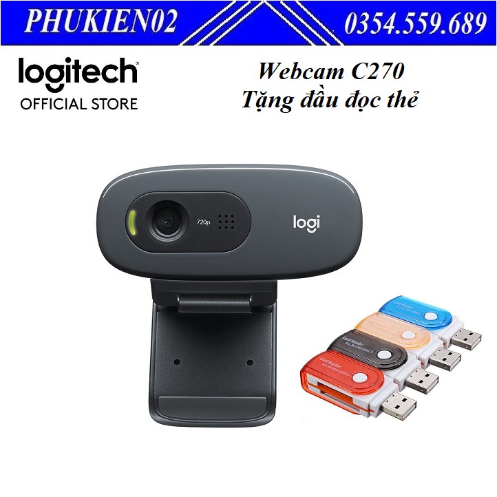Máy tính & Laptop > Phụ Kiện Máy Tính > Webcam || WEBCAM LOGITECH C270 HD TẶNG KÈM ĐẦU ĐỌC THẺ CHO LAPTOP/ ANDROID TV BOX Nhãn hiệu: LogitechSKU: SP4419Còn hàng