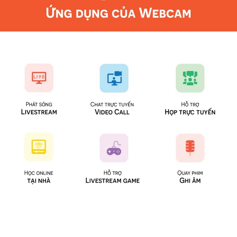 - Độ phân giải 720p, 1080p cho hình ảnh sắc nét khi sử dụng học online, trực tuyến, gọi video, phát trực tiếp.