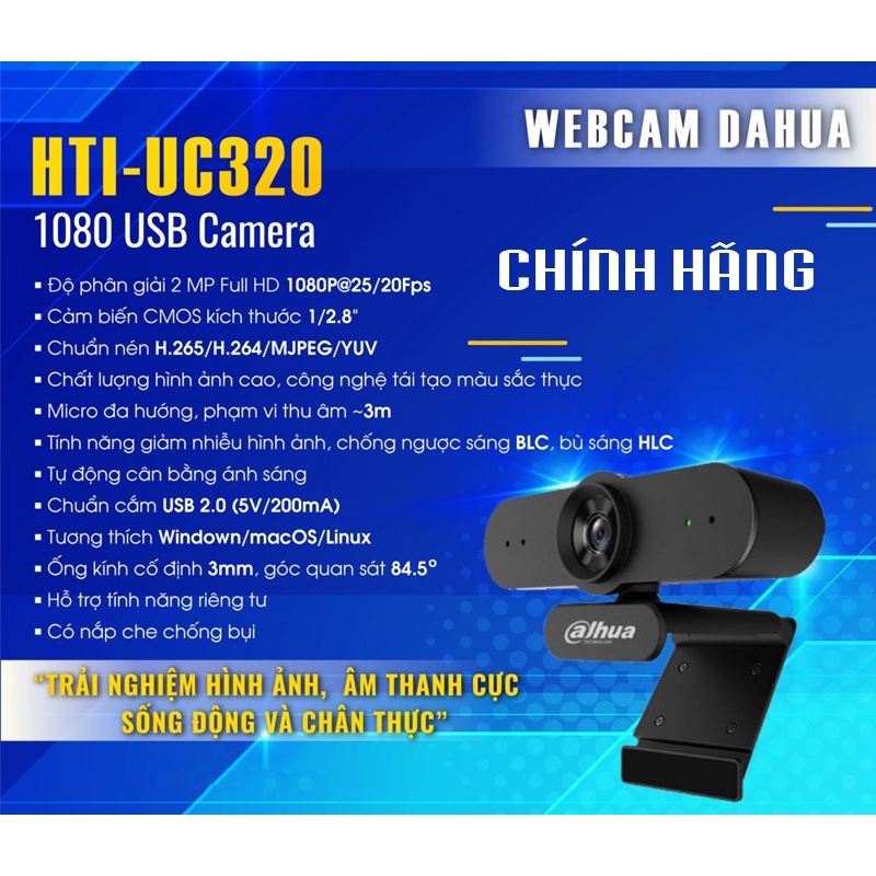 ✅Webcam Máy Tính DAHUA ( HTI - UC320 ) 2MB FULL HD 1080P tích hợp mic chuyên dụng: