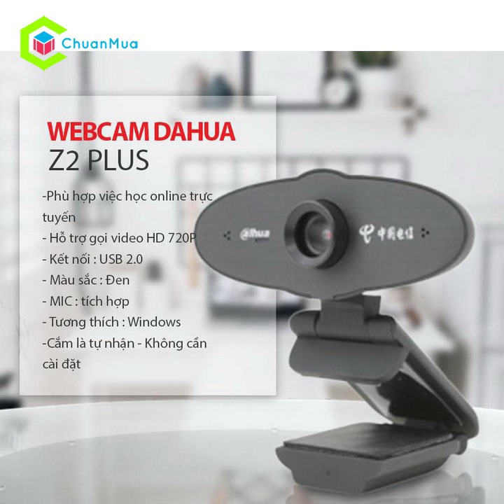 Máy tính & Laptop > Phụ Kiện Máy Tính > Webcam || Webcam máy tính Dahua Z2+ phân giải HD 720P tích hợp Micro trò chuyệnCòn hàng