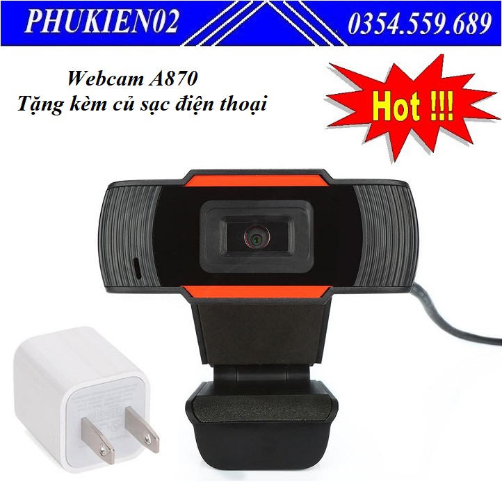 Webcam Máy Tính Độ Phân Giải Cực Nét A870 Tặng kèm củ sạc điện thoại đa năng cao cấp - Hàng chính hãng