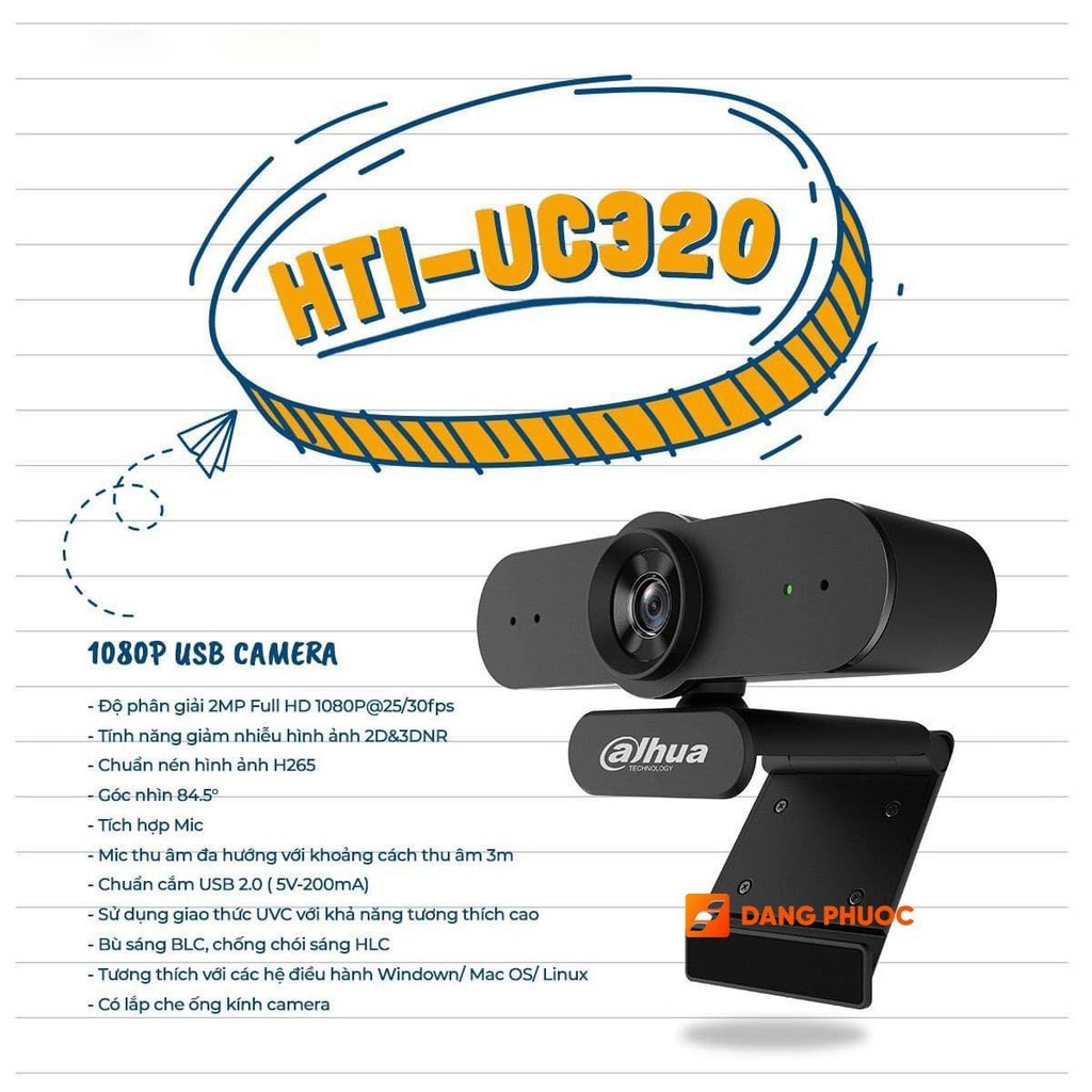 🟡 Webcam DAHUA HTI-UC320 giúp chúng ta thuận tiện trong các công việc: làm việc online, họp hành, giảng dạy, học nhóm, nói chuyện với người thân ở xa,...