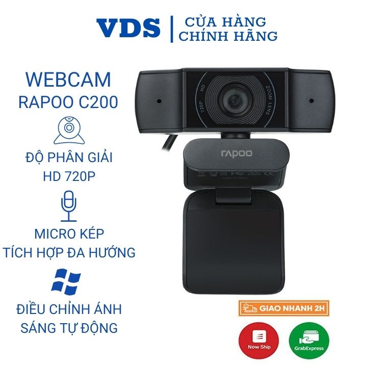 Máy tính & Laptop > Phụ Kiện Máy Tính > Webcam || Webcam máy tính Rapoo C200 mini tích hợp mic giảm ồn hỗ trợ học trực tuyến online,live stream cho pc laptop-VDS SHOPCòn hàng