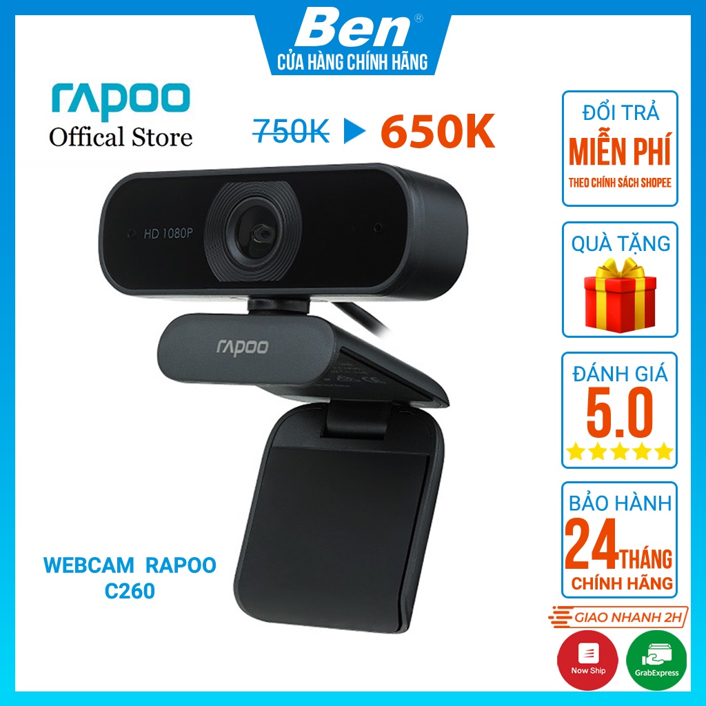 Máy tính & Laptop > Phụ Kiện Máy Tính > Webcam || Webcam máy tính Rapoo C260 FullHD 1080p - Webcam C260 Chính hãng BH 24TCòn hàng