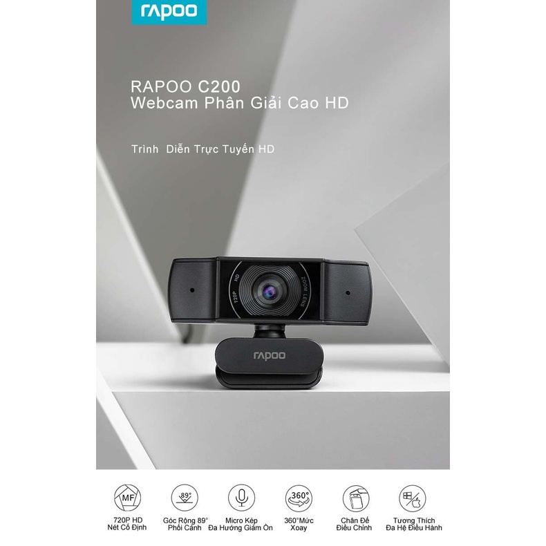 Máy tính & Laptop > Phụ Kiện Máy Tính > Webcam || Webcam Rapoo C200 HD 720p học online Tích hợp Micro chung cổng USB hình ảnh HD siêu nét,webcam họp trực tuyến chính hãngCòn hàng