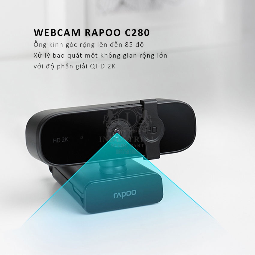 Webcam Rapoo C280 QHD 2K Live Stream, dạy học online, gọi điện video, webcam họp trực tuyến Hàng chính hãng