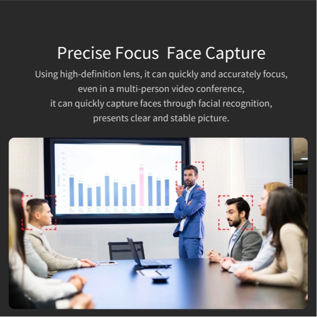 Sử dụng ống kính độ nét cao, có thể lấy nét nhanh chóng và chính xác, ngay cả trong hội nghị nhiều người, camera có thể nhanh chóng chụp khuôn mặt thông qua nhận dạng khuôn mặt, trình bày hình ảnh rõ ràng và ổn định.