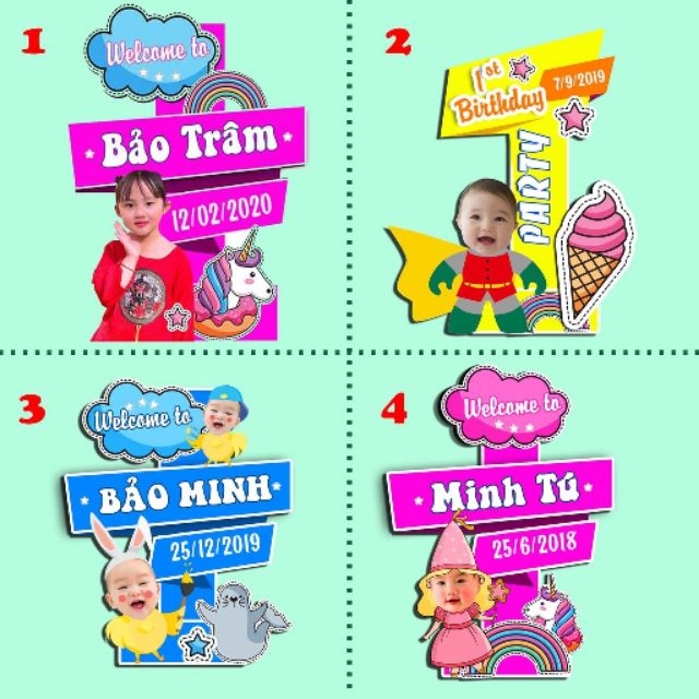 Giới thiệu Cây Welcome có chèn hình chibi của bé ( khách đặt kèm phụ kiện trên 200k giảm thêm 15% sản phẩm thiết kế )