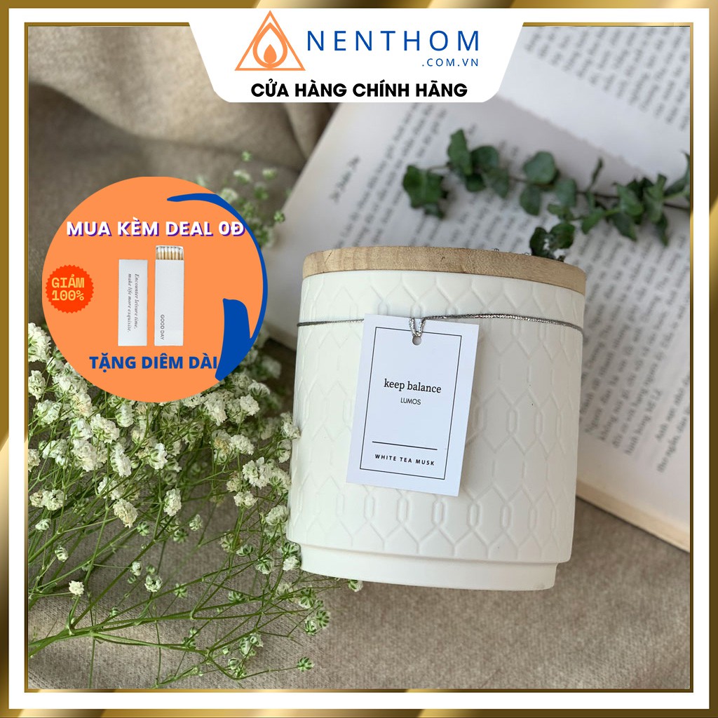 Nhà cửa & Đời sống > Trang trí nhà cửa > Nến & đồ đựng nến || WHITE TEA MUSK Hương Bạch Trà và Xạ Hương - Nến Thơm Lumos - NT303Còn hàng