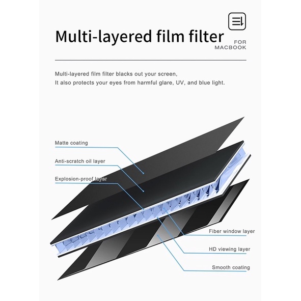 Miếng dán từ tính chống nhìn trộm cho Macbook Air 13 inch hiệu WIWU Magnetic Screen Protector Privacy cấu thành từ 6 lớp, giúp bạn thật an tâm khi sử dụng.
