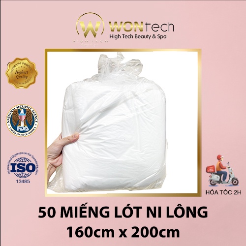 Giới thiệu [WONTECH] Bịch 50 Miếng Lót Tắm Trắng Trải Giường Nylon - Size 1m6 x 2m.