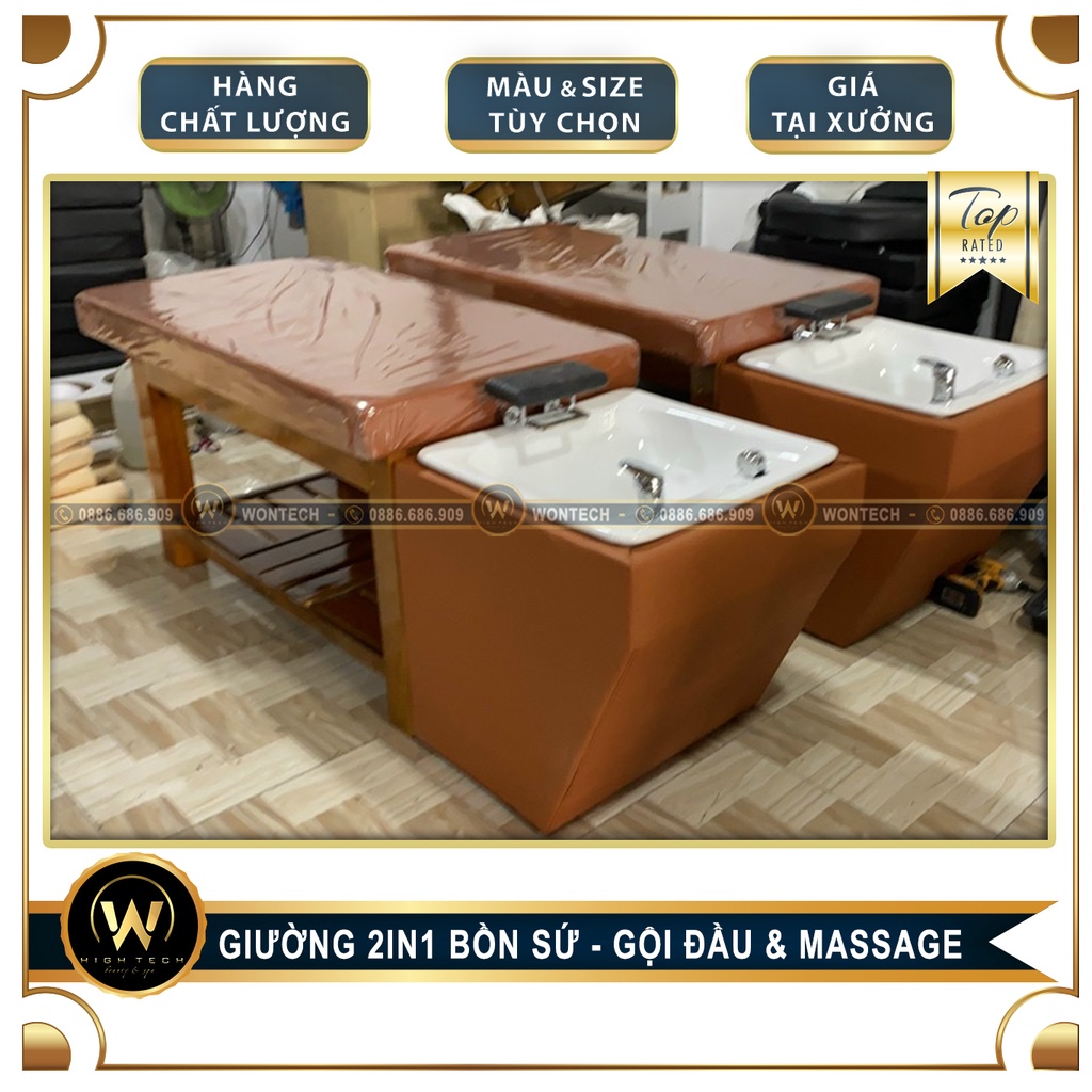 [WONTECH - NOW SHIP] Giường Gội "GỖ" 2in1 - Bồn "SỨ" Vuông.