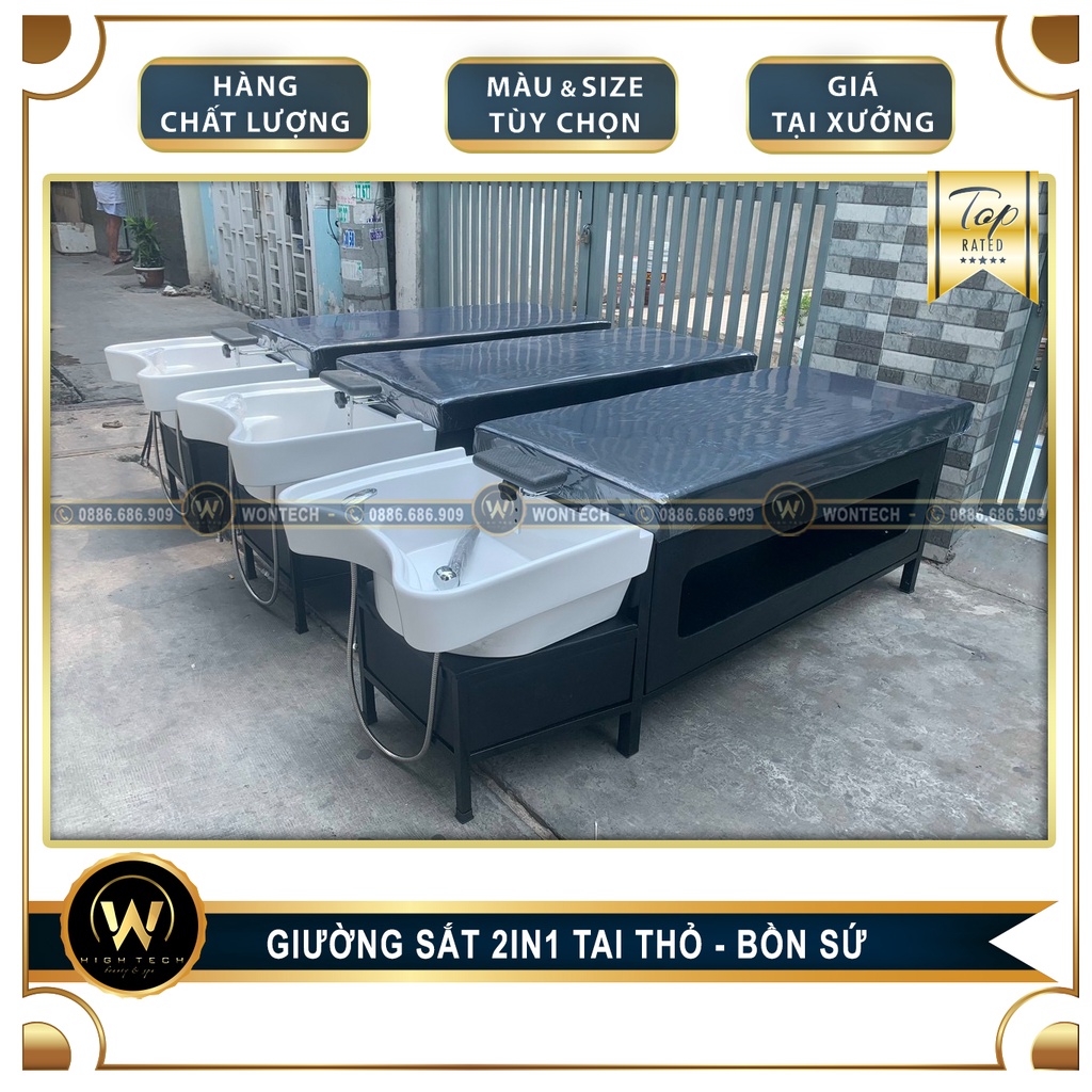 [WONTECH - NOW SHIP] Giường Gội "SẮT" 2in1, Bồn "SỨ" Tai Thỏ.