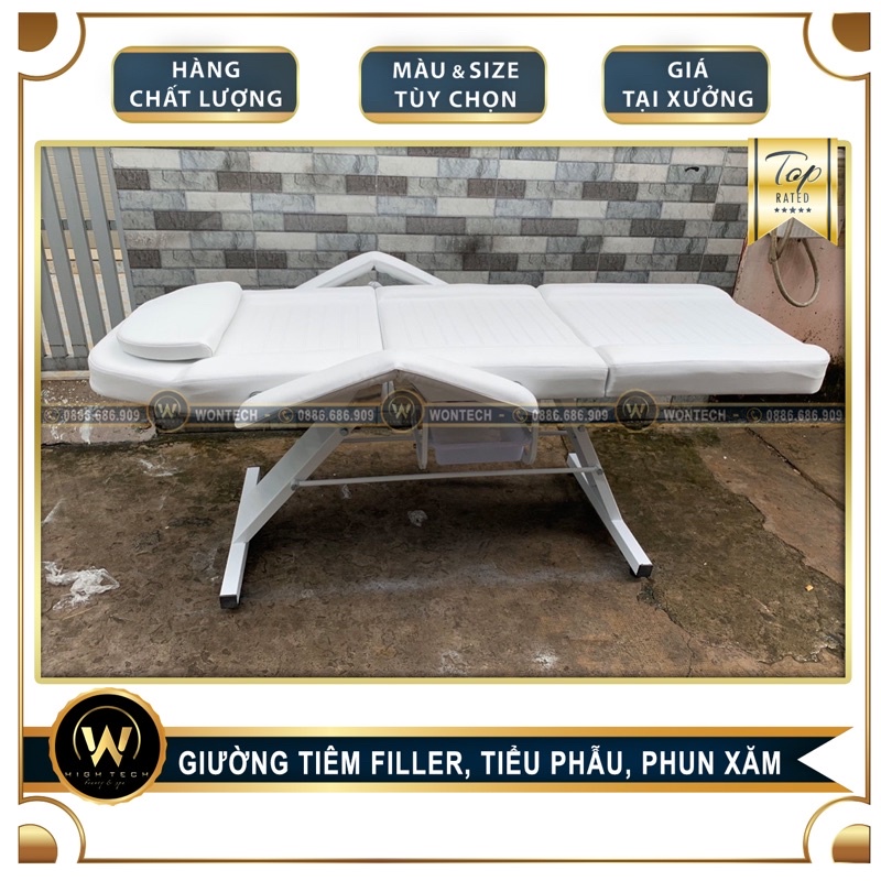 Giới thiệu [WONTECH - NOW SHIP] Giường Tiêm Filler Loại 1 - Có Vân - Nệm Êm - Màu Trắng.