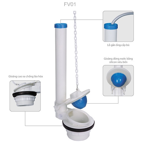 - Thích hợp cho các loại bồn cầu 1 nút nhấn có két nước rời (Toto, American Standard, Ceasar, Viglacera…)