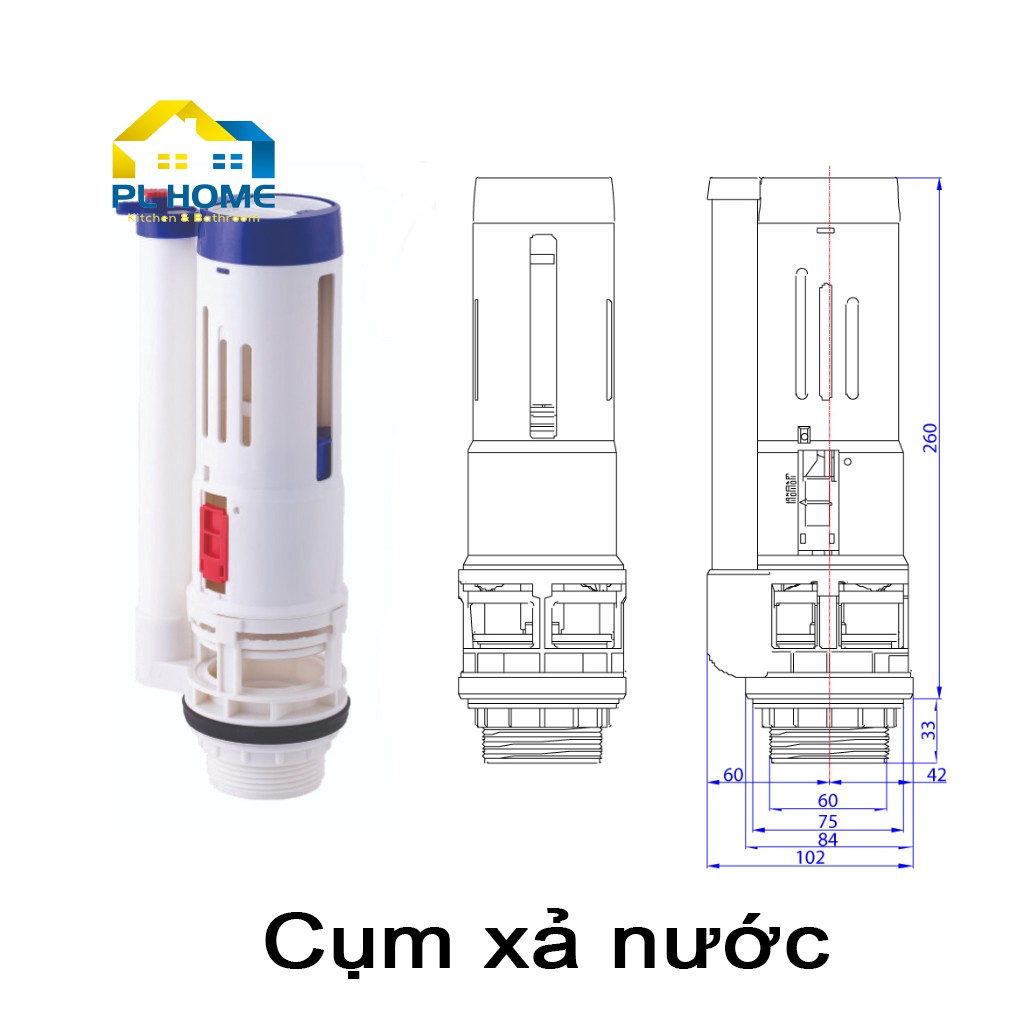 • xả 2 nút nhấn sử dụng cho bồn cầu 2 khối rời