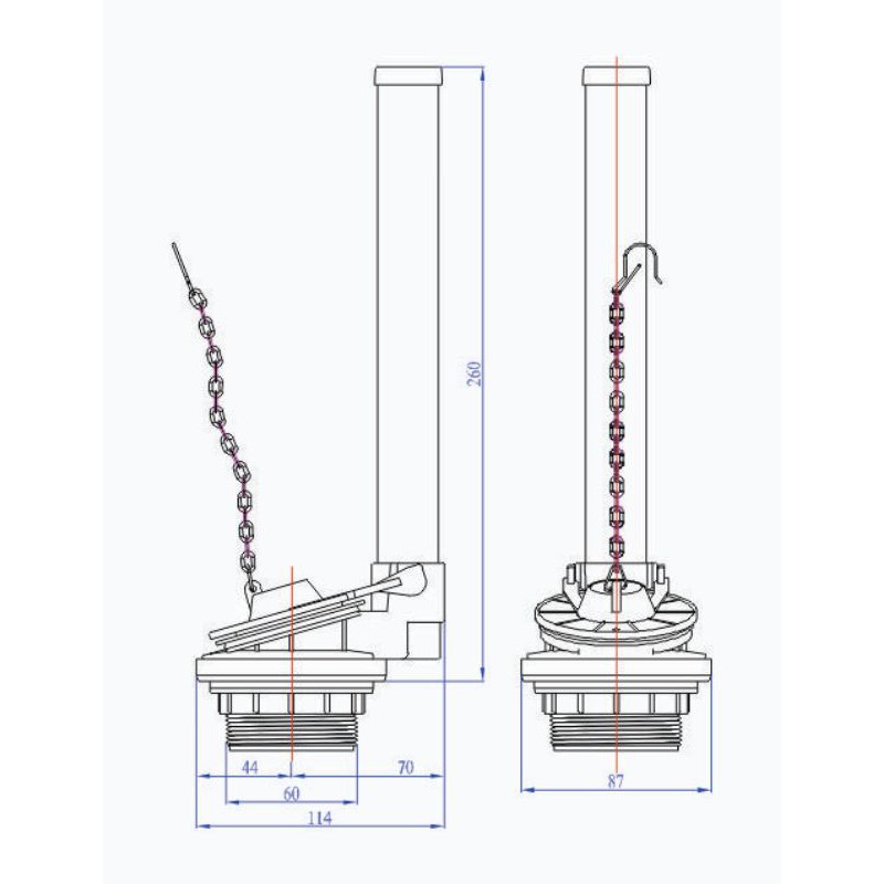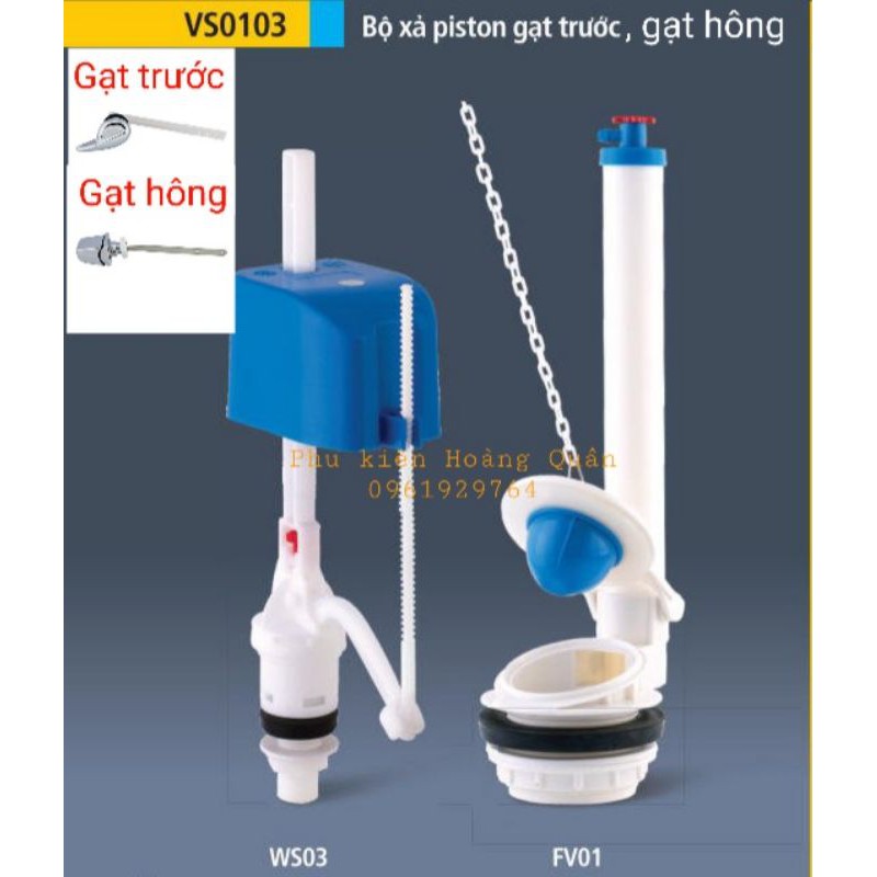 Bộ xả thùng nước(két nước) VS0103 piston tay gạt dùng cho tất cả các bồn cầu xả gạt tayBộ xả thùng nước tay gạt bao gồm :