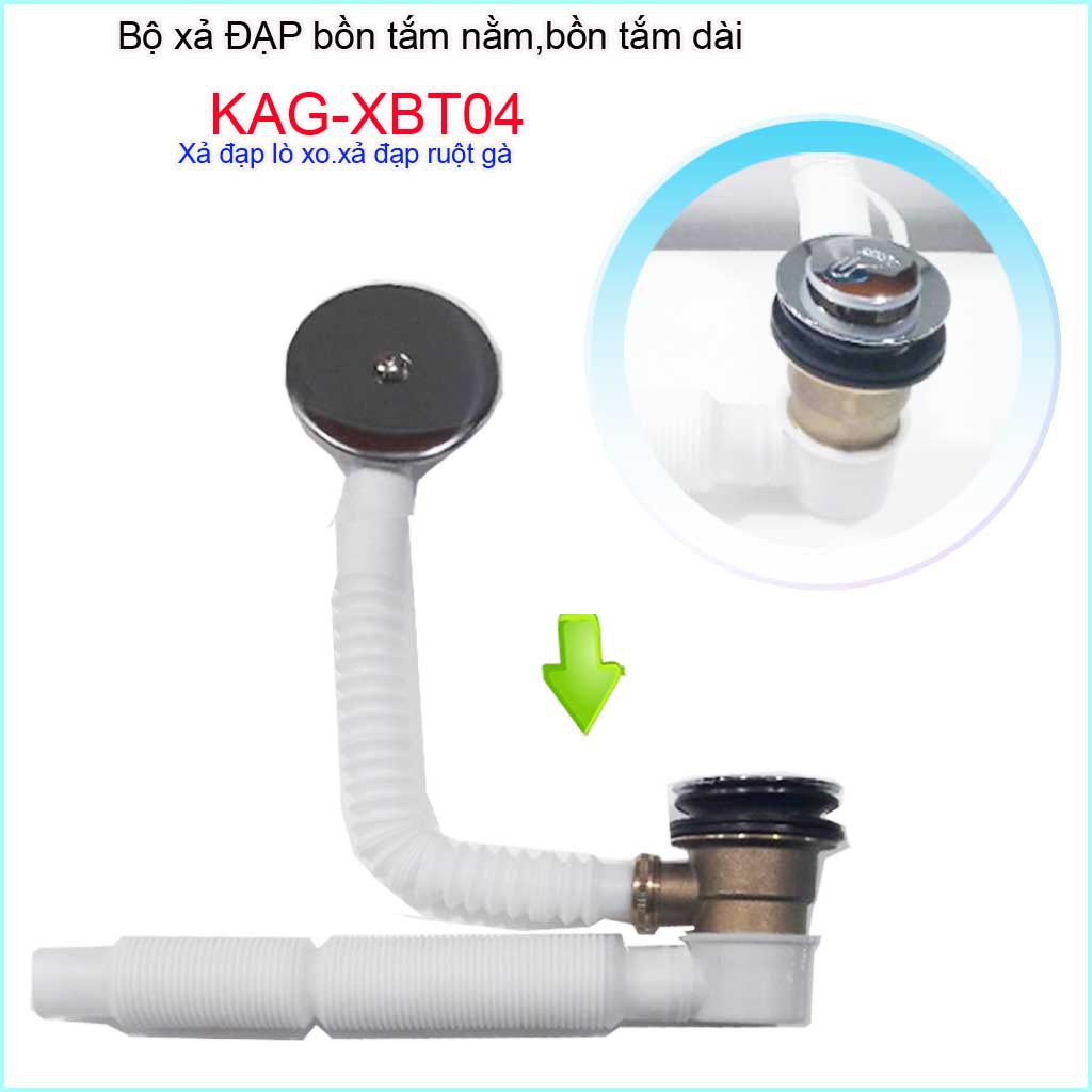 Xả bồn tắm dài, Bộ xả dùng cho bồn tắm nằm KAG-XBT04 ( xả đạp chân)Xả bồn tắm dài, Bộ xả dùng cho bồn tắm nằm KAG-XBT04 đầu xả làm bằng đồng mạ lớp Chrome sáng bóng, ống thải dưới làm bằng nhựa loại 1, có thể co giãn ( thay đổi độ dài)