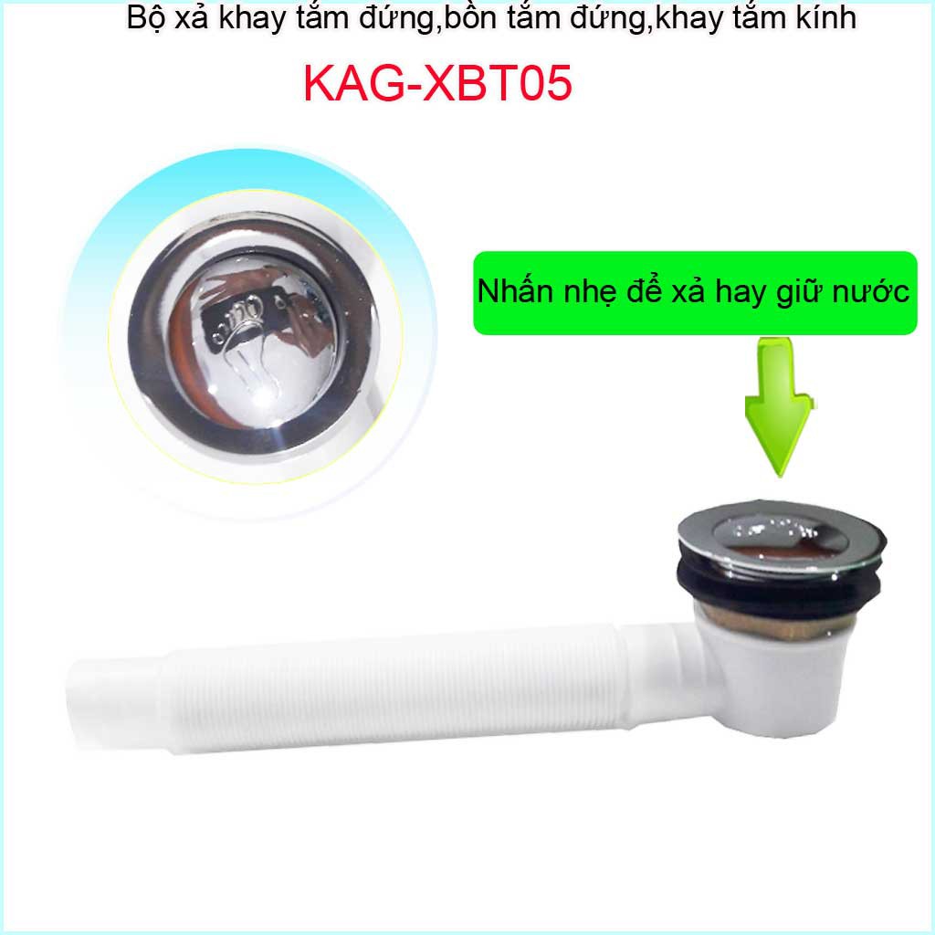Xả bồn tắm đứng, xả bồn tắm kính KAG-XBT05Xả bồn tắm đứng, xả bồn tắm kính KAG-XBT05 đầu xả làm bằng đồng mạ lớp Chrome sáng bóng, ống thải dưới làm bằng nhựa loại 1, có thể co giãn ( thay đổi độ dài)