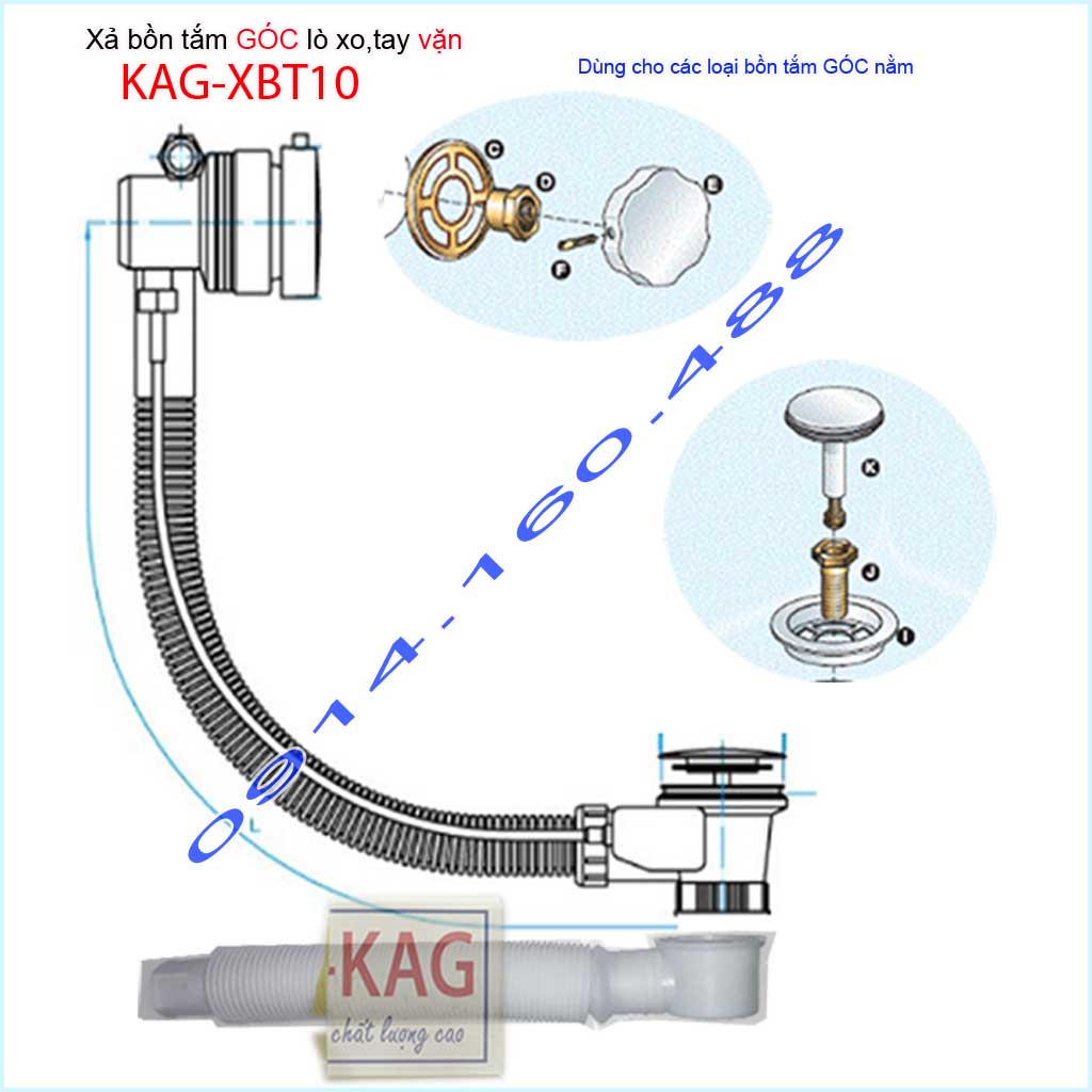 Giới thiệu Xả bồn tắm góc KAG-XBT10 -nhựa, Bộ xả vặn bồn tắm nằm siêu bền dùng cho bồn góc 90cm-1,2m-1,5m-1.6m