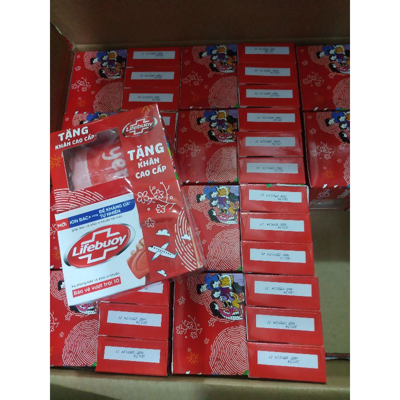 Xà Bông Cục Lifebuoy bộ 3 bánh tặng khăn cao cấp