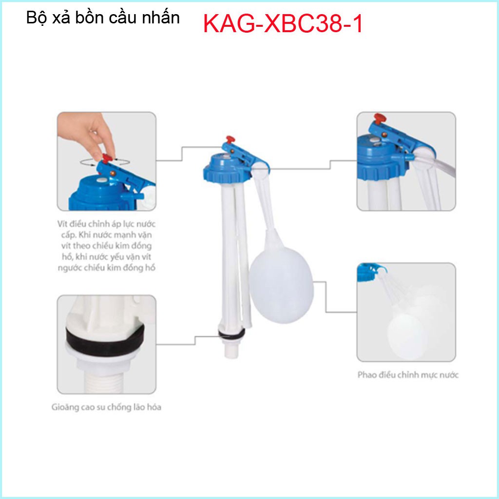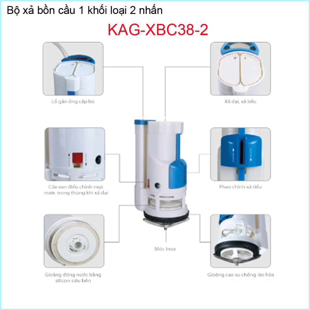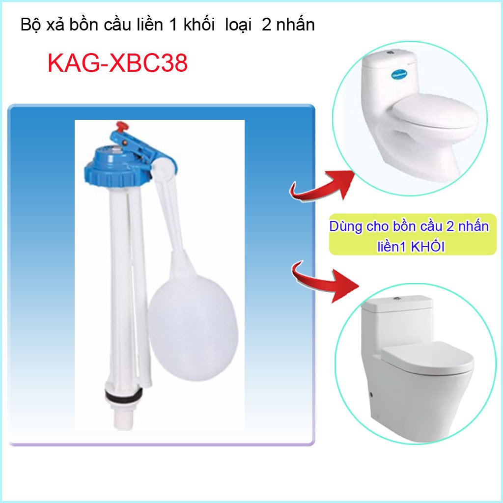 Bộ xả cầu 1 khối, bộ xả cầu liền khối KAG-XBC38 ( dùng cho loại có 2 nút nhấn xả)Bồn cầu 1 khối ( liền khối) là loại bồn cầu có thùng nước xả đúc liền với thân ngồi bàn cầu (giống hình)