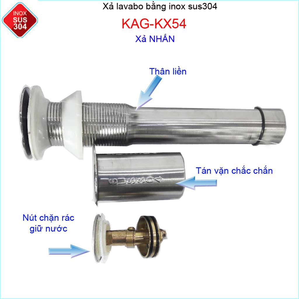 Xả chậu lavabo KAG-KX54 Inox SUS304, bộ xả nhấn lavabo sứ Inox dày cao cấp xả nước nhanh sử dụng tốt