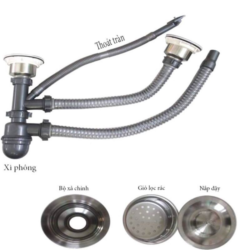 Nhà cửa & Đời sống > Dụng cụ chăm sóc nhà cửa > Chậu, xô & gáo nước || bộ xả chậu rửa chén 2 hộc inox, Bộ xi phông ống xả chậu rửa bát -Còn hàng