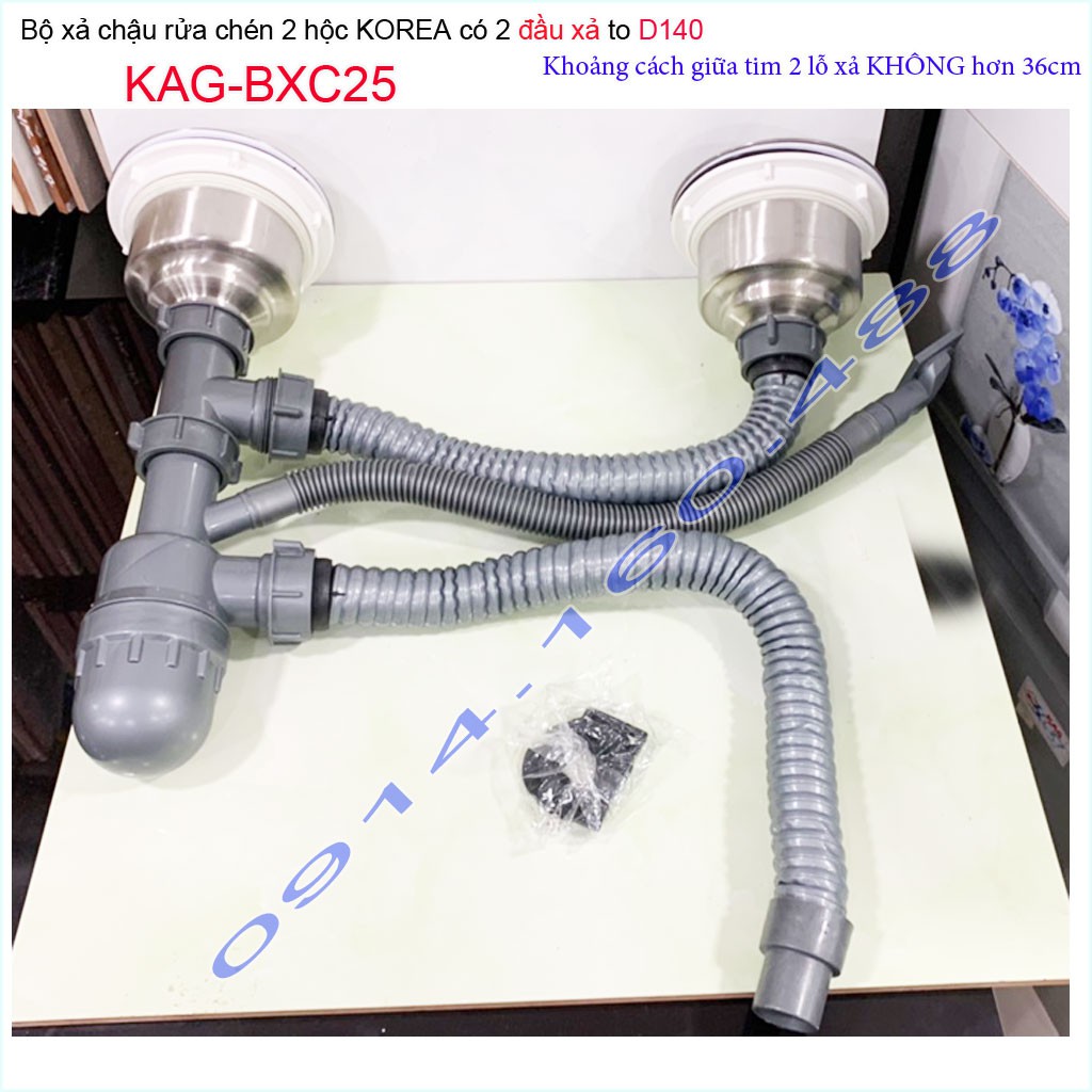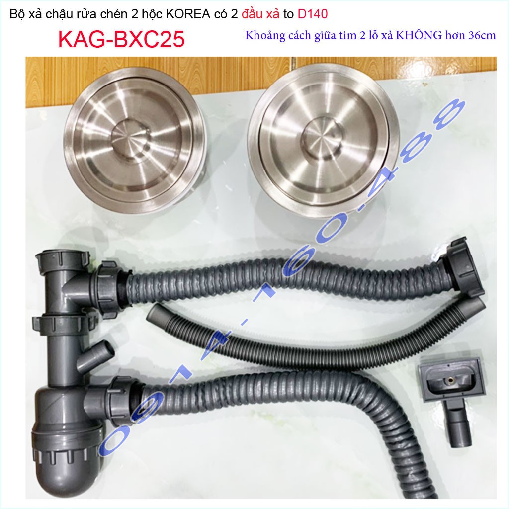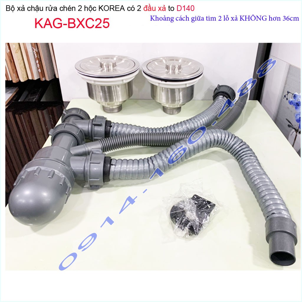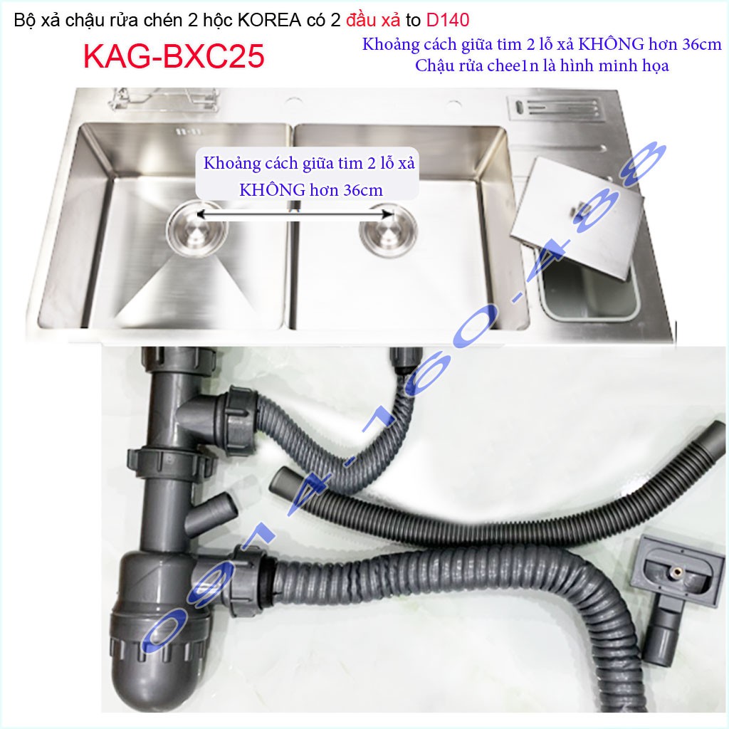 Bộ xả chậu rửa chén bát 2 hộc lớn KAG-BXC25 lỗ xả lớn D140, trọn bộ xả bồn rửa chén bát 2 hộc lớn lỗ thoát D140 thoát nhanh sử dụng tốtThay thế cho chậu chiều dài tâm lỗ 2 xả <= 40cm