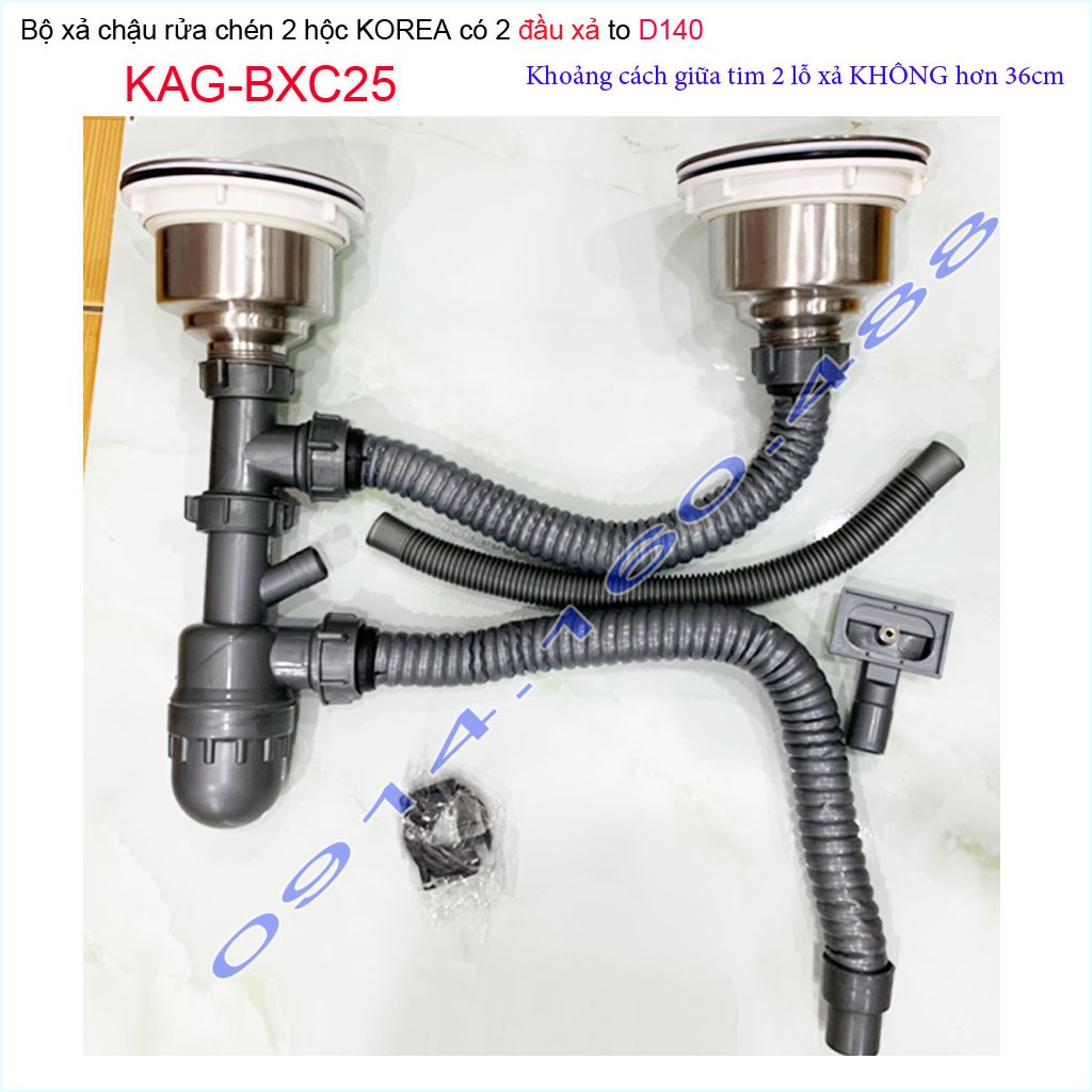 Bộ xả chậu rửa chén bát 2 hộc lớn KAG-BXC25 lỗ xả lớn D140, trọn bộ xả bồn rửa chén bát 2 hộc lớn lỗ thoát D140