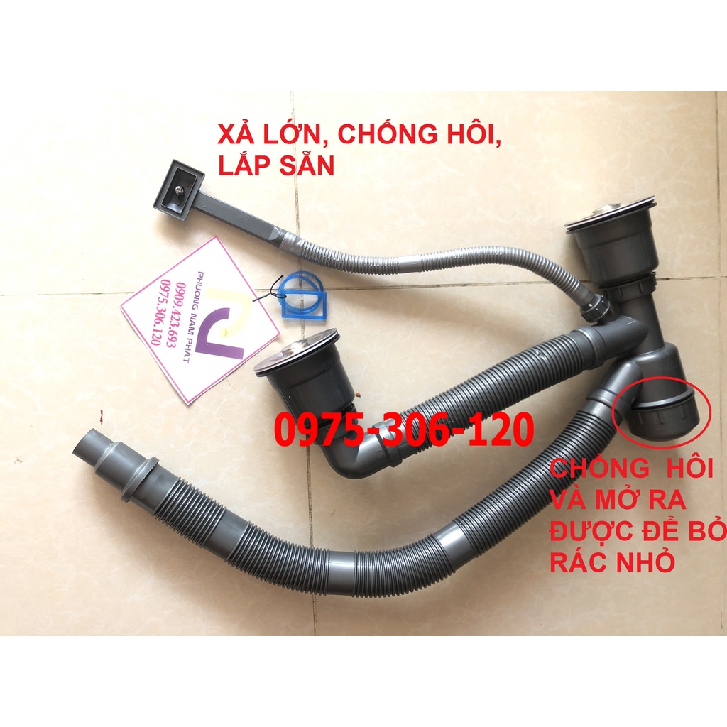Bộ Xả Chậu Rửa Chén Bát TO DÙNG CHO 2 hộc sát nhau và đường kính bầu xả là 110mm CÓ Chống mùi hôi