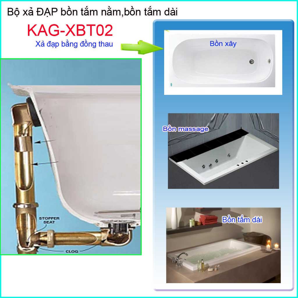 Ưu điểm: Xả đạp bồn tắm bằng thau, Bộ xả dùng cho bồn tắm nằm KAG-XBT02 làm bằng chất liệu đồng thau, siêu bền, sử dụng cho các công trình cao cấp như khách sạn, resort...