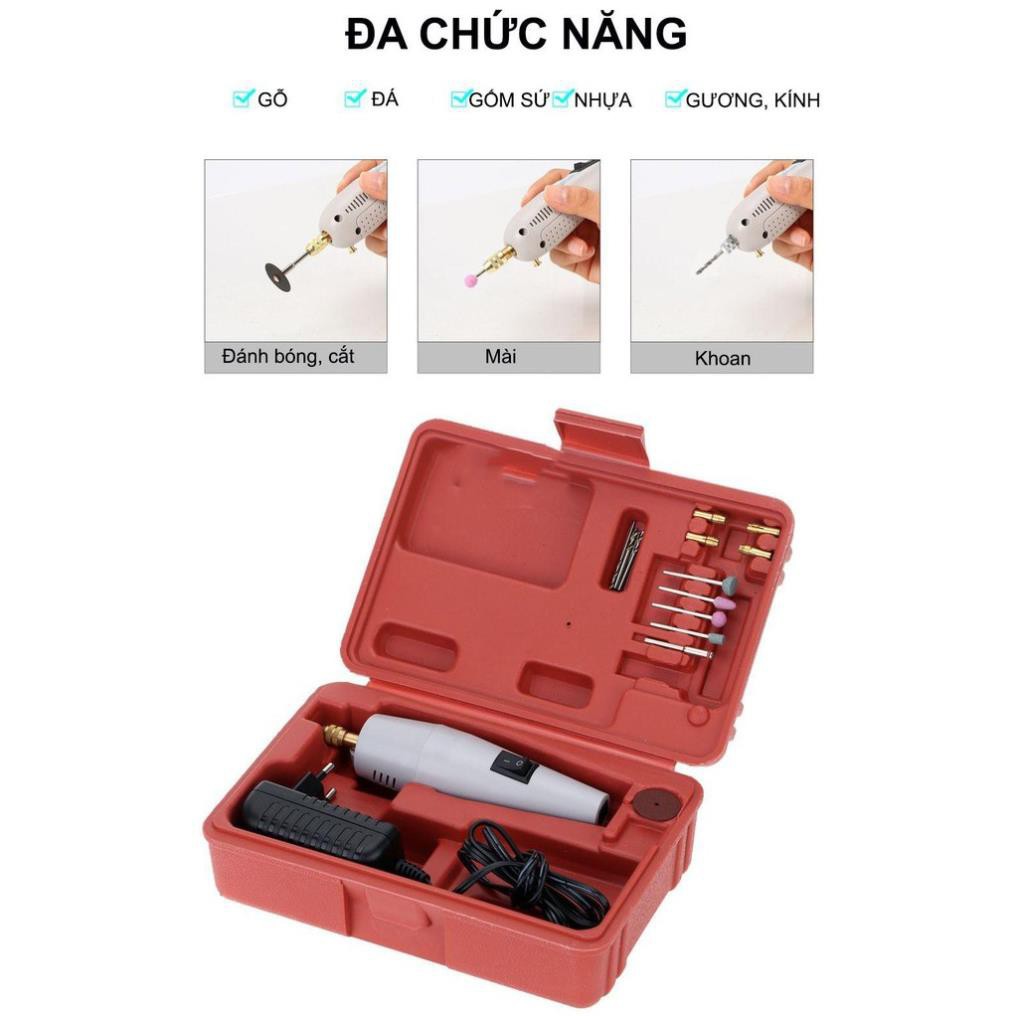 - Bộ Máy Khoan Mini có công suất cao , số vòng tua cực nhanh , có thể điều chỉnh nhiều mức độ khác nhau .Máy rất nhỏ gọn, kích thước chỉ nằm gọn trong lòng bàn t nhưng hiệu quả mang lại thật tuyệt vời ngoài cả mong đợi. Máy thích hợp với mục đích khoan, mài cắt các mạch điện tử, điêu khắc, chạm trổ.
