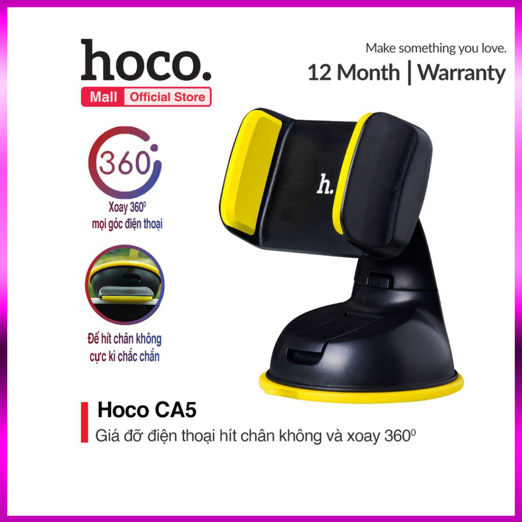Giới thiệu [Xả gấp] Giá đỡ,kẹp điện thoại Hoco CA5 trên xe hơi xoay 360 độ đế hít chân không cực kì chắc chắn màu sác đa dạng