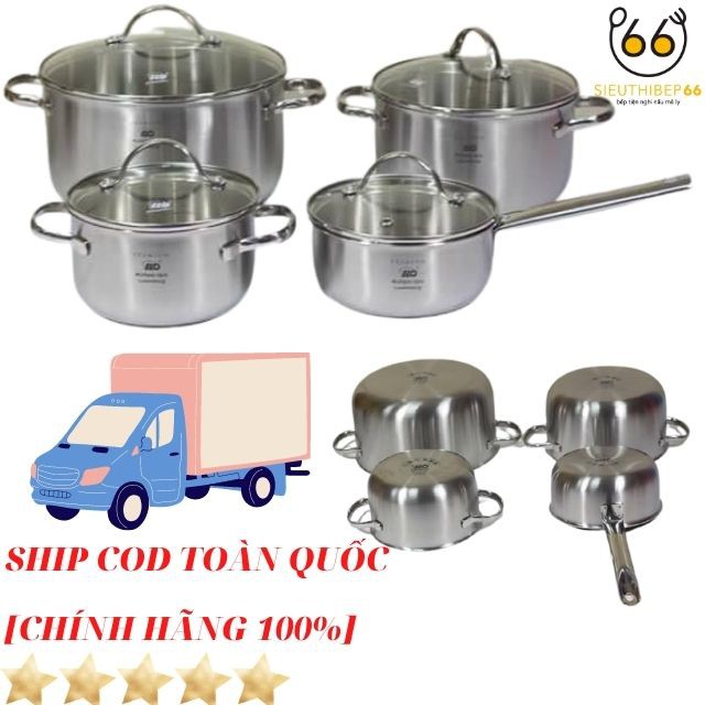 [Xả Hàng] Bộ Nồi Bếp Từ Elo LUXEMBURG 4 Chiếc Đáy Liền, Dung Tích 1.5-6L, Bộ Nồi Inox Đáy Từ, Quánh Kèm Vung Kính
