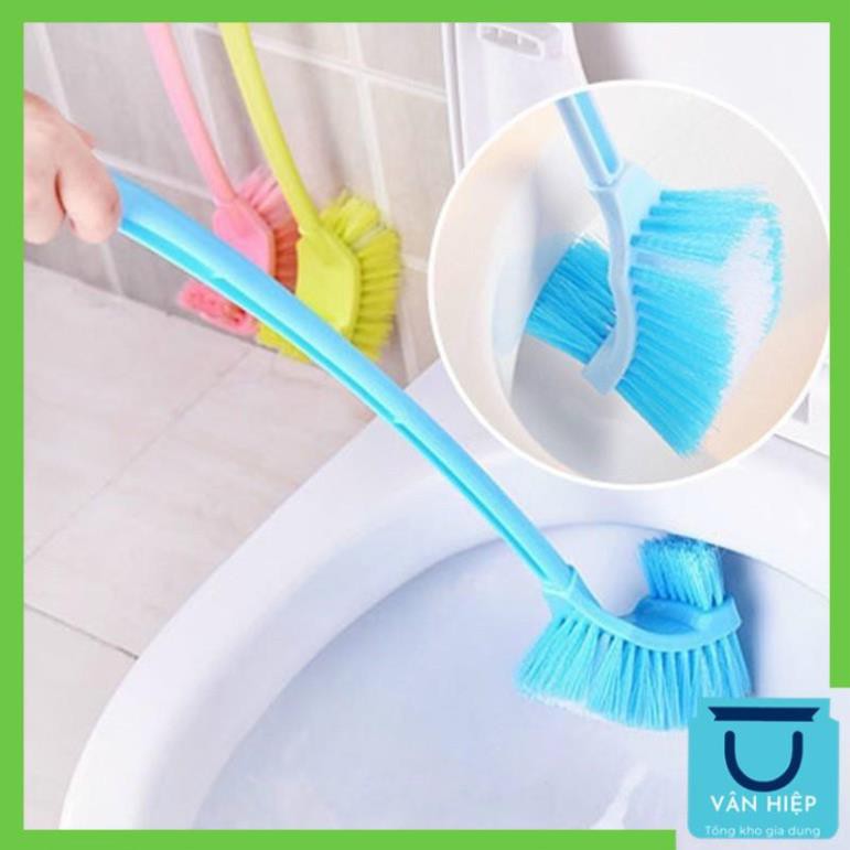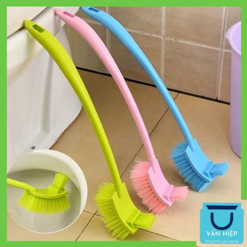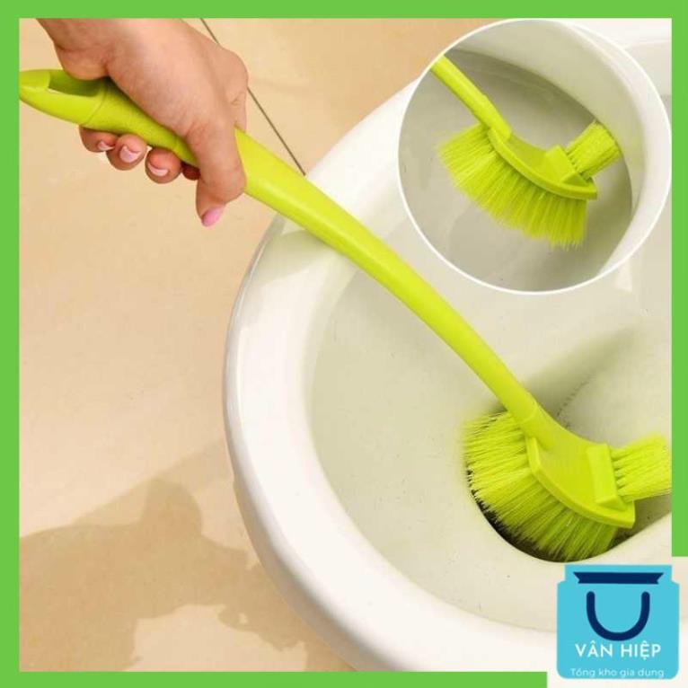 [xả hàng] Cọ bồn cầu toilet 2 đầu chà vệ sinh nhà tắm cán dài lông chổi mềm bằng nhựa cao cấp màu xanh hồng