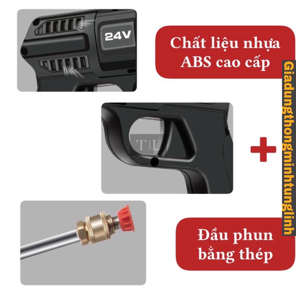 💥Trọn bộ sản phẩm: 5m dây, 1 sạc, pin 24V, thanh nối dài, 2 đầu phun